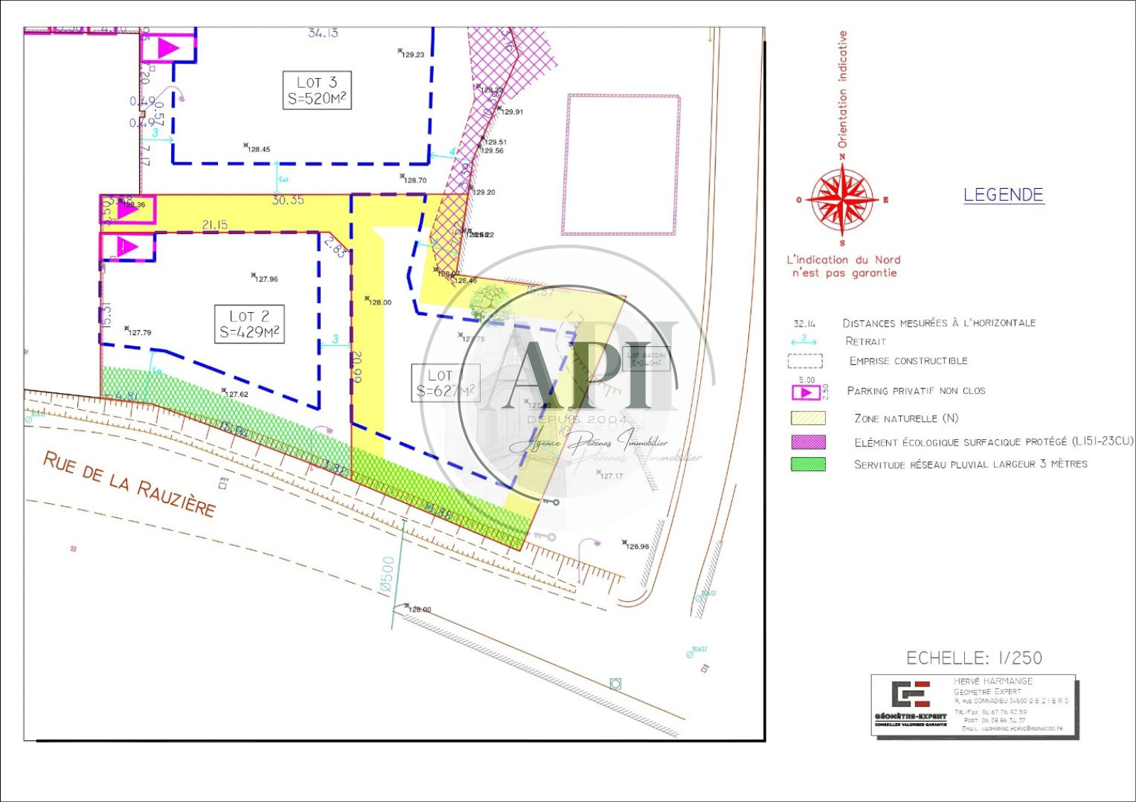 Exclusivité. Sur les hauteurs de GABIAN, Reste 2 terrains à vendre dont le lot N° 1. Terrain constructible de 627m² . Au calme, en dehors de l'axe principale. Charmant lotissement de petite taille de 8 lots au total avec une vue dégagée et bonne orientation. Libre choix du constructeur. Plain pied de préférence. Accompagnement construction possible. Consultation du permis d'aménager et du règlement du lotissement possible sur RDV. prévoir 600? de plan géometre, 500 ? de caution garantie des parties communes + frais de notaires.